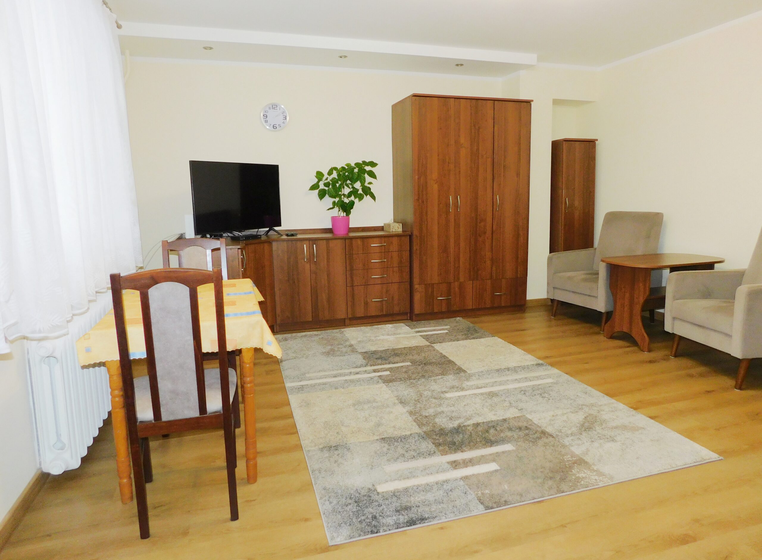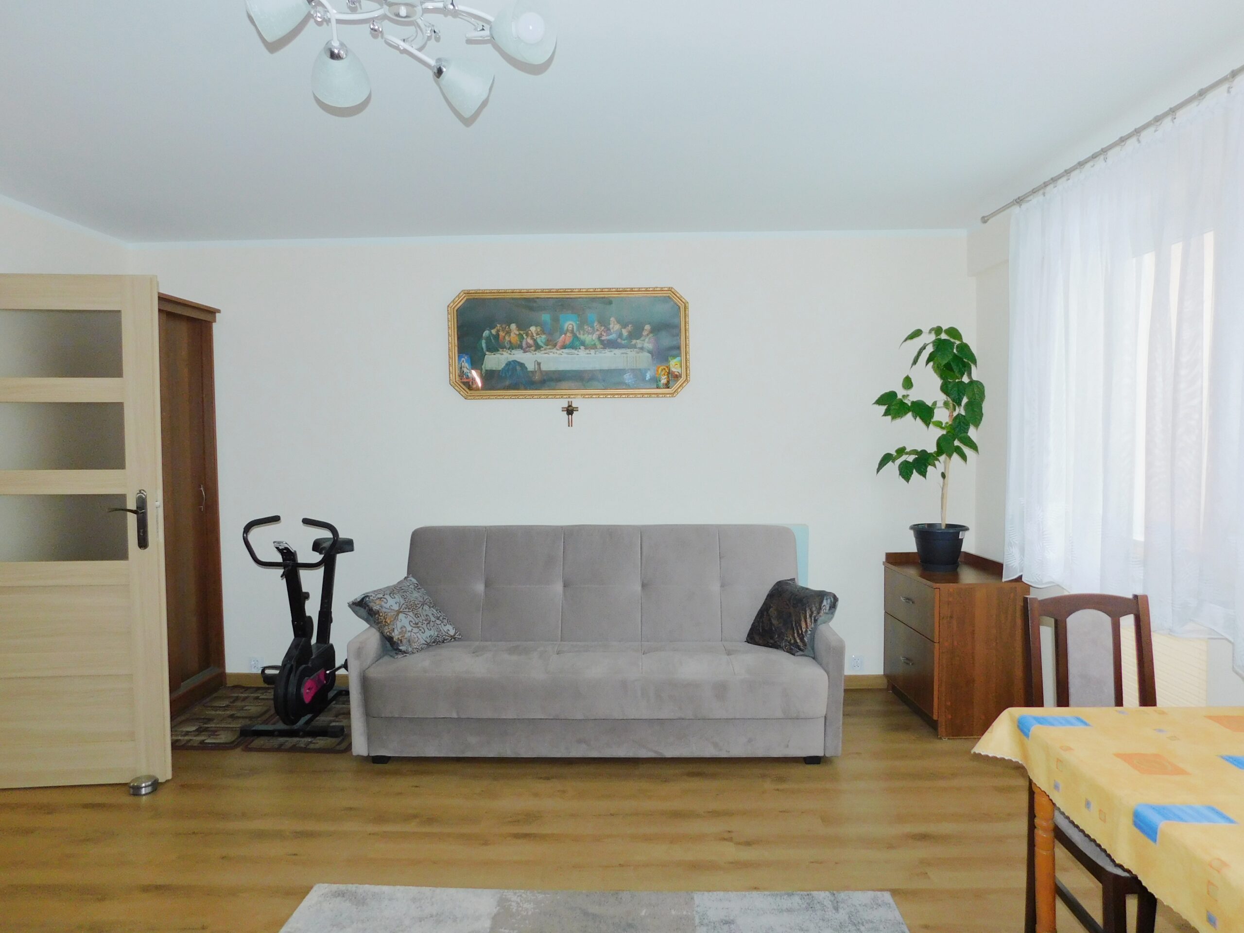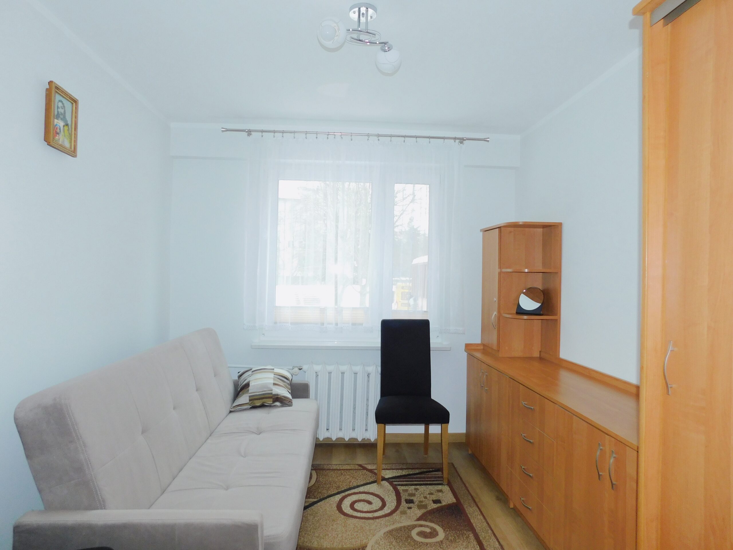 Oferujemy do sprzedaży lokal mieszkalny stanowiący odrębną nieruchomość o powierzchni użytkowej 49,4m2 położony na parterze wielomieszkaniowego budynku przy ul. Kombatantów w Giżycku. Mieszkanie po kapitalnym remoncie, który odbył się na przełomie 2022-2023r. podczas, którego została zmieniona instalacja elektryczna, hydrauliczna, wygładzono tynki, położono na podłogach terakotę i panele. Układ mieszkania posiada dwa niezależne pokoje: salon z dużym balkonem, sypialnię, kuchnię, łazienkę z wc i przedpokój. Stolarka okienna: okna PCV. W najbliższej okolicy mieszkania znajdują się liczne placówki usługowo – handlowe, szkoła, apteka, przychodnia zdrowia, plac zabaw dla dzieci, lodowisko, boisko Orlik. Przed budynkiem znajdują się miejsca parkingowe dla mieszkańców. Budynek w, którym zlokalizowany jest lokal mieszkalny został poddany termomodernizacji. Do mieszkania przynależy piwnica o powierzchni 2,46 m2 oraz udział w częściach wspólnych budynku oraz gruncie.